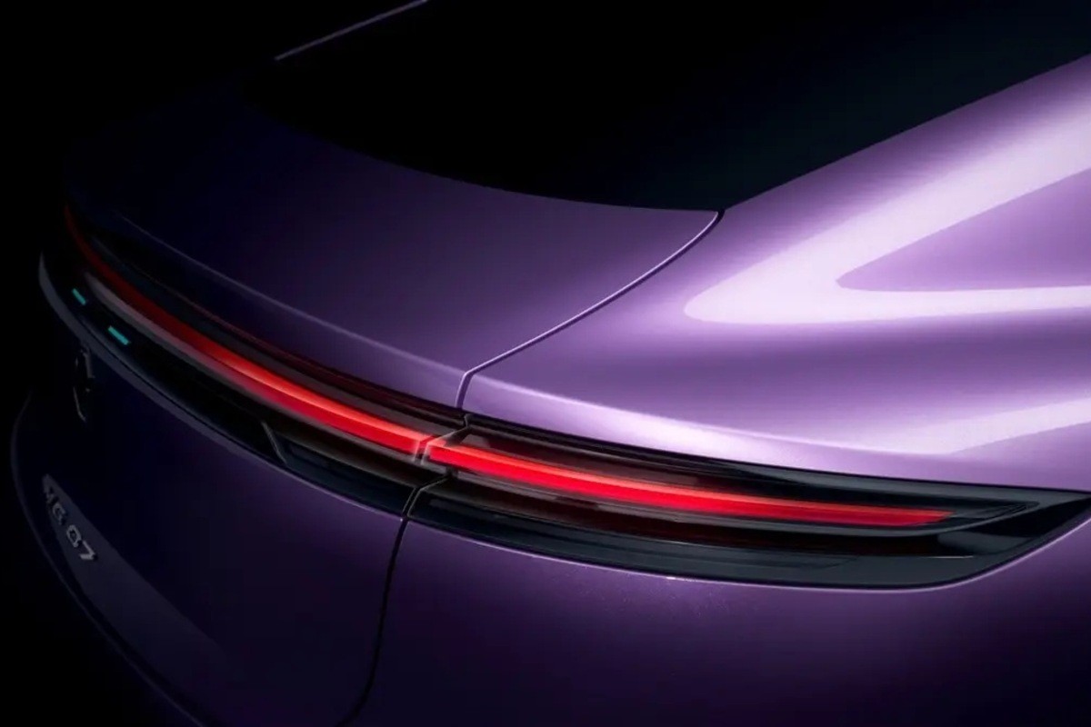 Az átlátszó burkolatú, az embléma felett teljes szélességében végigfutó LED-es lámpatestek és a határozott vállak egyértelműen a Porsche Taycan és a Panamera stílusjegyeit ötvözik, azt a látszatot keltve, mintha a tervezőcsapat hosszú órákat töltött volna a német sportkocsik tanulmányozásával.