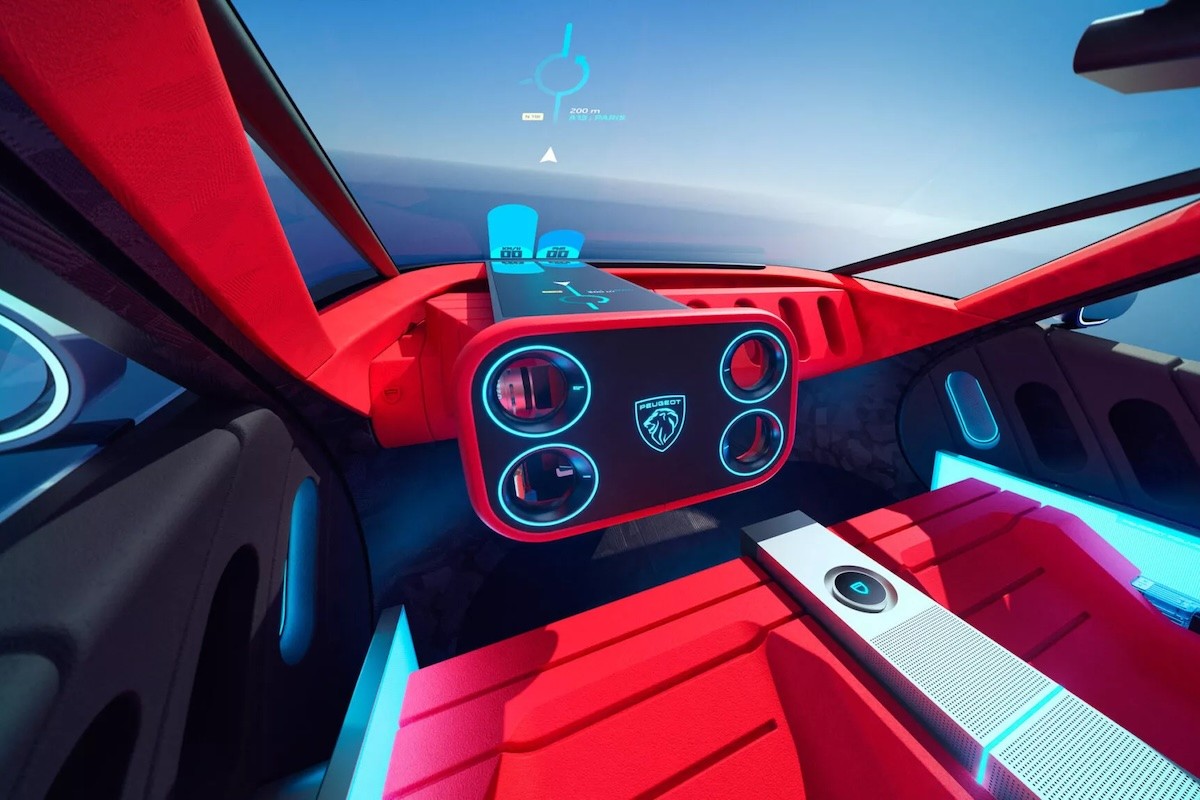 A belső tér a jövő Peugeot-modelljeinek előhírnöke. A Polygon egy teljesen új i-Cockpit koncepciót mutat be, ahol a műszerek és az infotainment-rendszer a szélvédő teljes felületére vetített kijelzőként jelennek meg – ez a megoldás egy 31 hüvelykes képernyőnek felel meg.