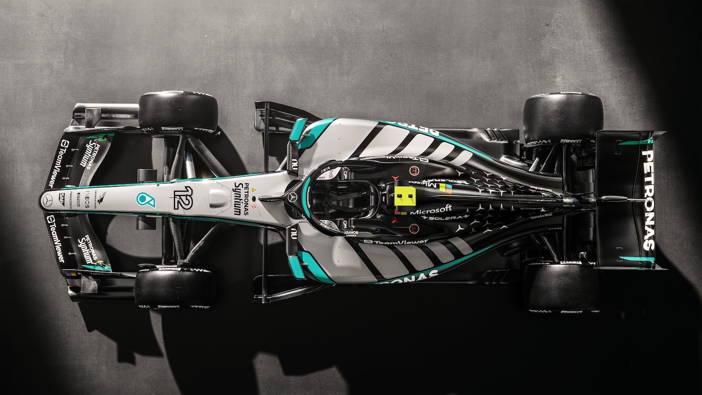 A külső megjelenés terén a Mercedes nem szakított a jól bevált sémával: a fekete-ezüst alapszín megmaradt, amit továbbra is a türkiz Petronas-díszítés egészít ki. A festés egyik újdonsága viszont a motorborításon feltűnő Microsoft-logó, ami azután került fel, hogy a csapat sikeresen elhódította az Alpine korábbi hosszú távú partnerét.